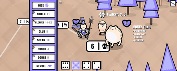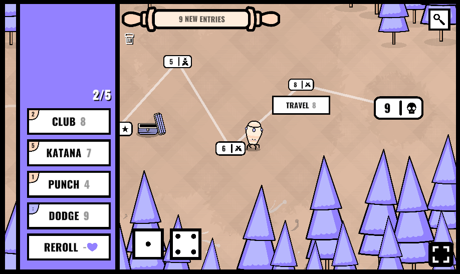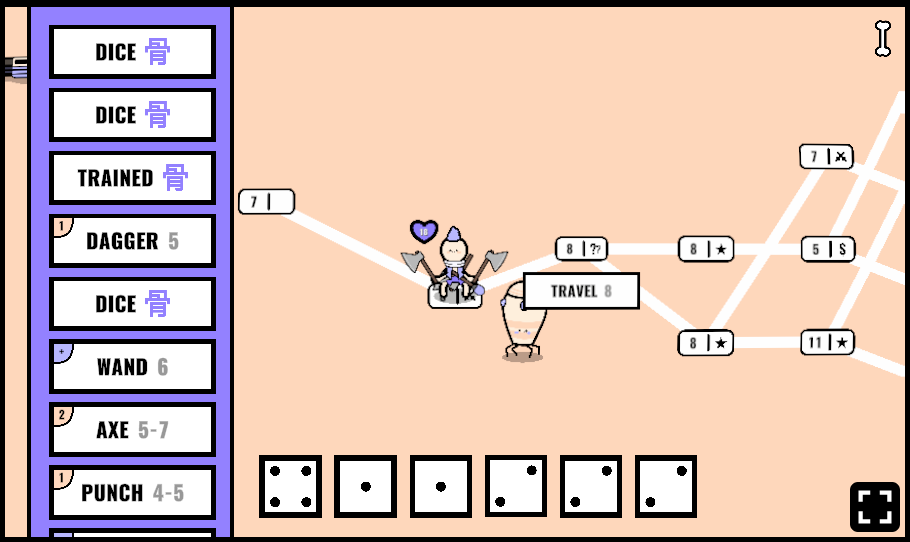 The RNG can be really brutal, especially early game, like the first 3 rounds. Many times I never get the right combo to be able to travel, and don't have an item to consume dice, like the wand, so just eat re-rolls and health. Looks great, love the concept but the balance feels a little skewed.