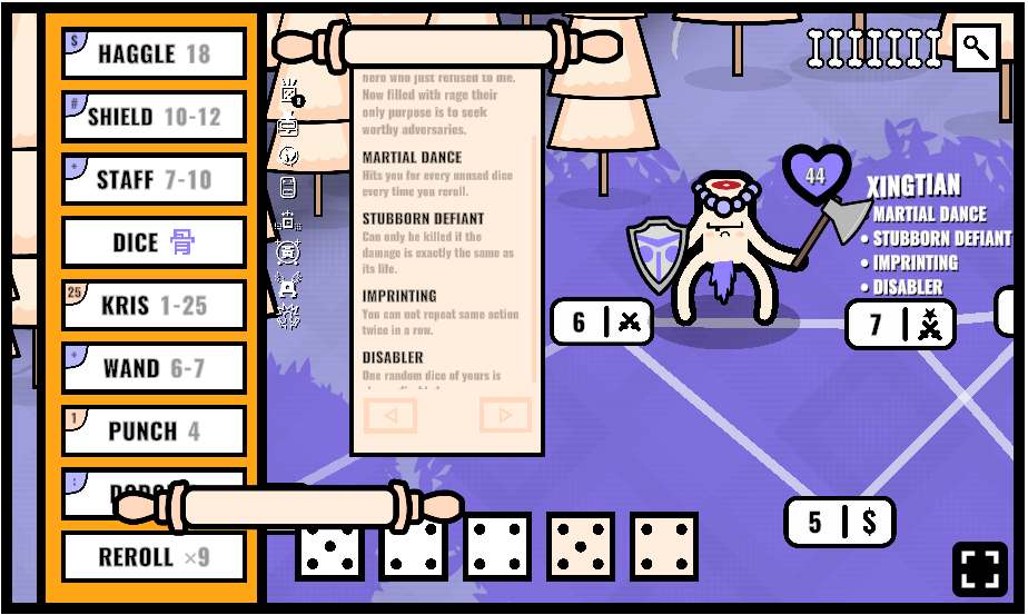 I took too many die and now my reroll is offscreen and unclickable, probably gonna softlock soon :(